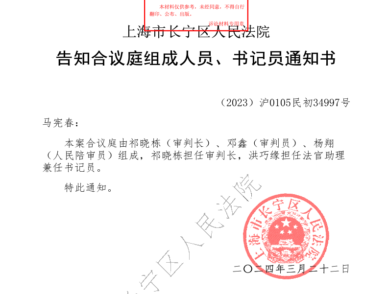 (2023)沪0105民初34997号案件错误目录
